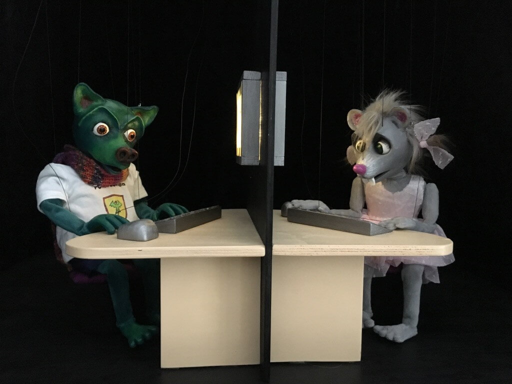 In der eigenen Werkstatt entstehen in liebevoller Kleinstarbeit sowohl Marionetten, Tischfiguren und Klappmaulpuppen, als auch Kulissen, Requisiten und Bühnenbilder.